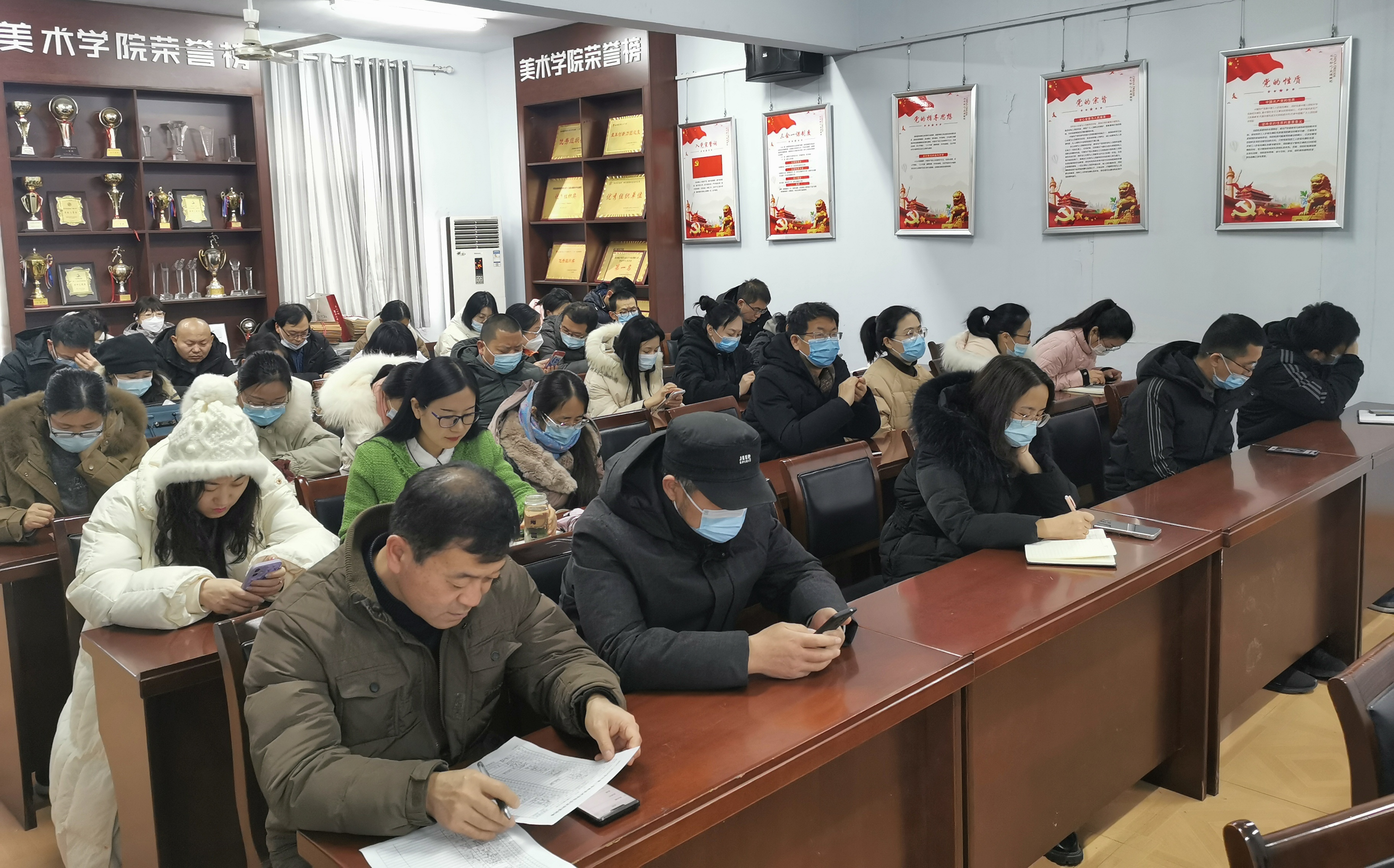 为做好新学期开学的各项准备工作,保障各项工作的顺利开展,2月18日下午,美术学院在七号楼三楼会议室召开2022年春季学期第一次全体教师会议。学院党委书记史继红、副书记付松山、副院长曹天成、张亮以及全体教职工参加此次会议,会议由史继红主持。