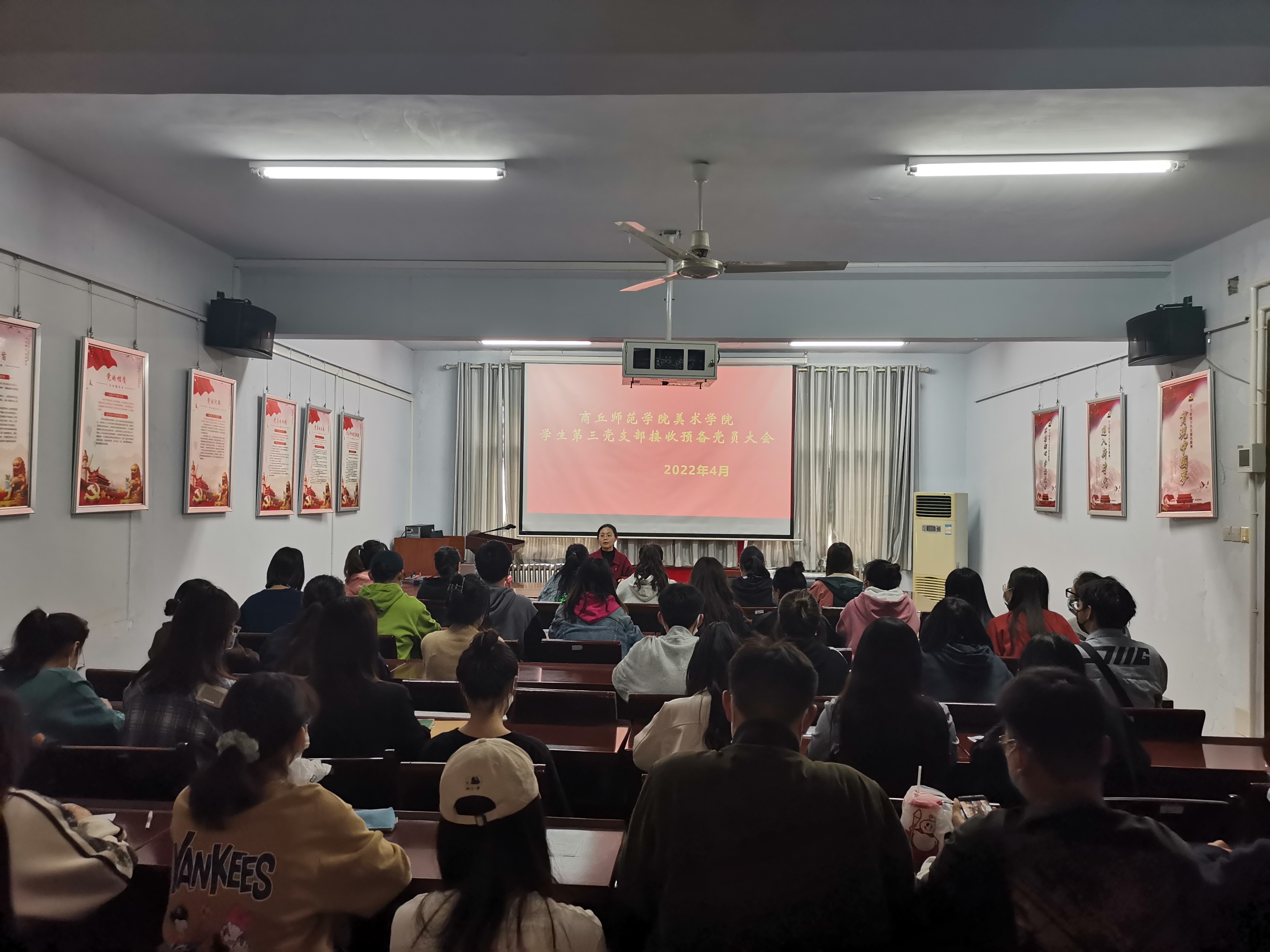 4月29日,美术学院学生第三党支部在七号楼三楼会议室隆重召开接收预备党员与预备党员转正大会,会议由支部书记熊宁宁主持。