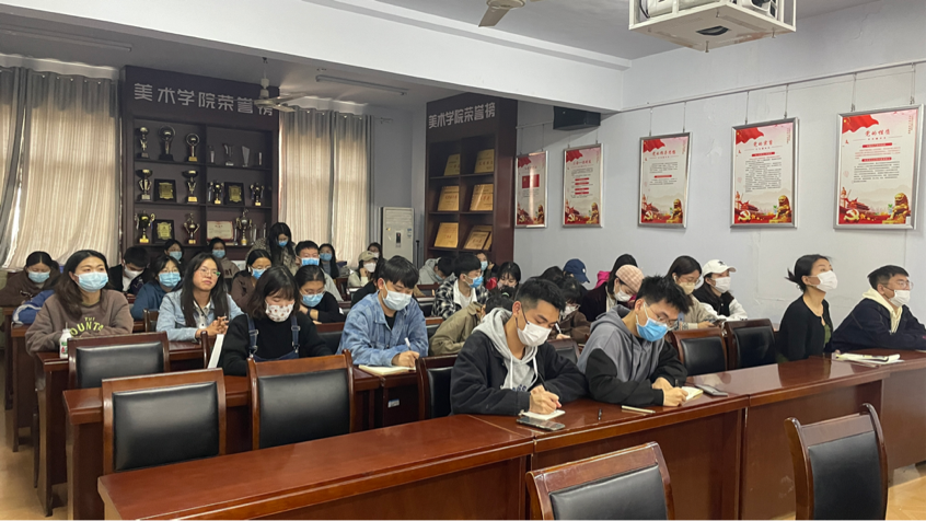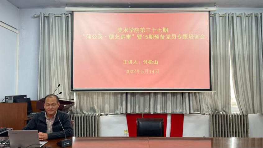 5月14日,美术学院在七号楼三楼会议室召开第三十七期“蒲公英●德艺讲堂”暨15期预备党员专题培训会。会议由院党委副书记付松山主持,第15期全体预备党员参加会议。