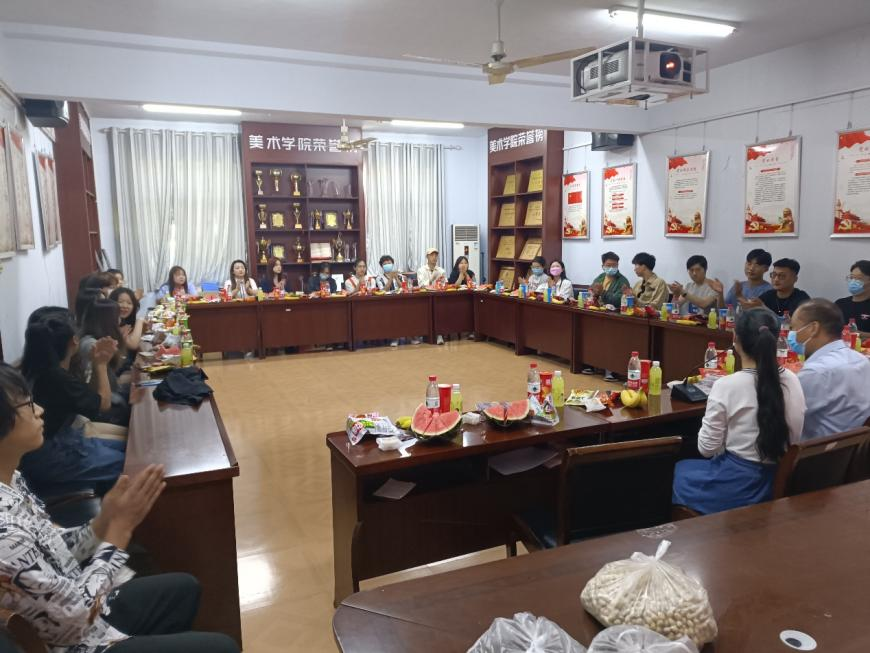 5月20日,美术学院在七号三楼会议室举办欢送2022届毕业生茶话会。院党委副书记付松山、辅导员魏冉及毕业生代表参加活动。