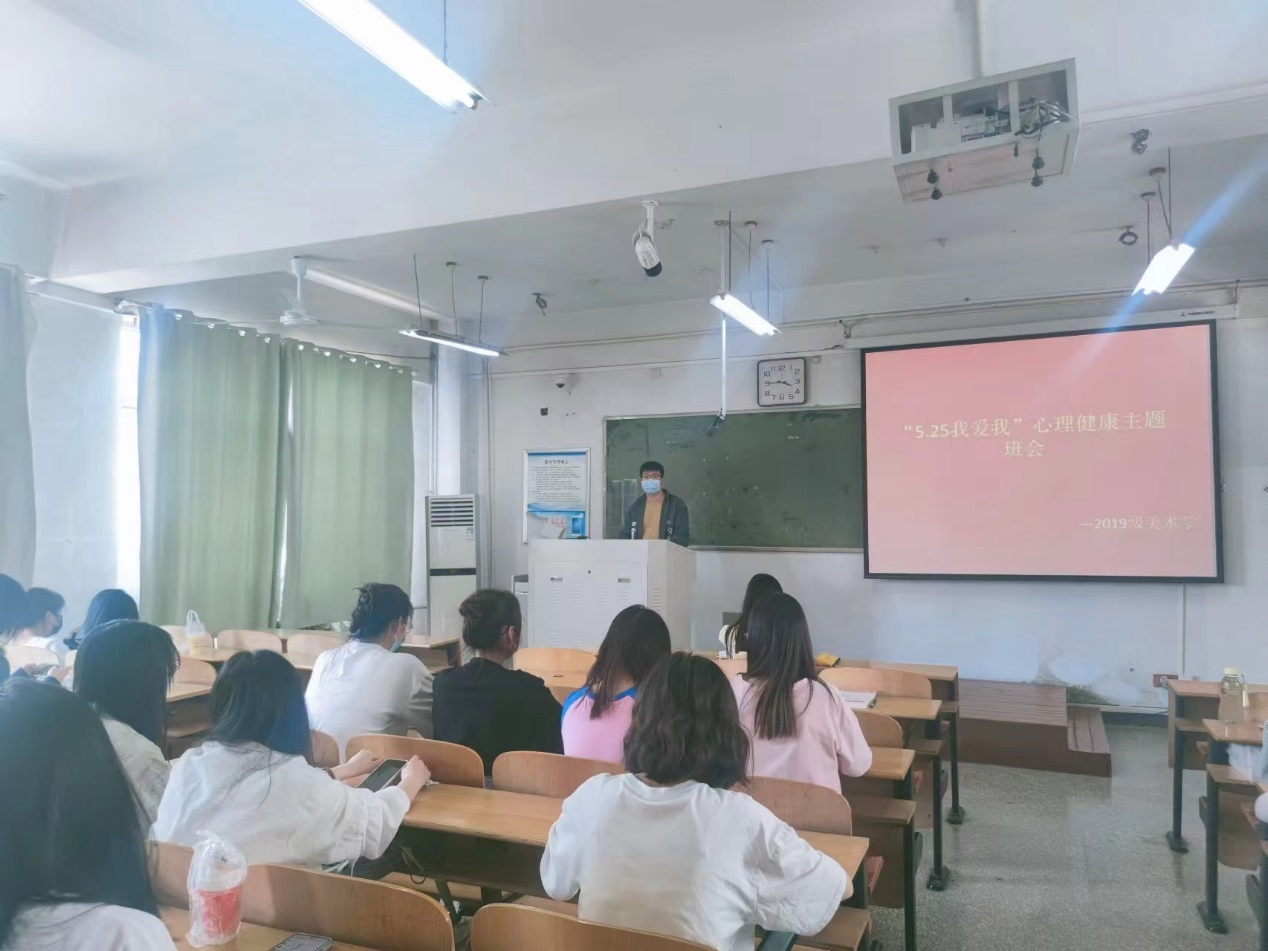 为营造良好的心理健康氛围,提升学生心理健康知识水平,强化心理保健意识,5月25日,美术学院2019级召开“5.25我爱我”心理健康教育主题班会。会议由各班班长与心理委员主持召开。