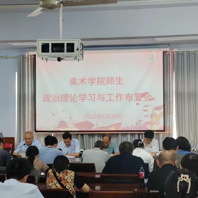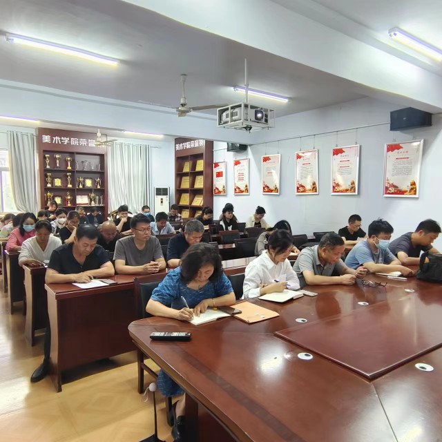 6月25日下午,美术学院在七号楼三楼会议室召开师生政治理论学习与工作布置会。院党委书记史继红、院长李林、副书记付松山、副院长张亮、全体教职工及学生代表参加会议。