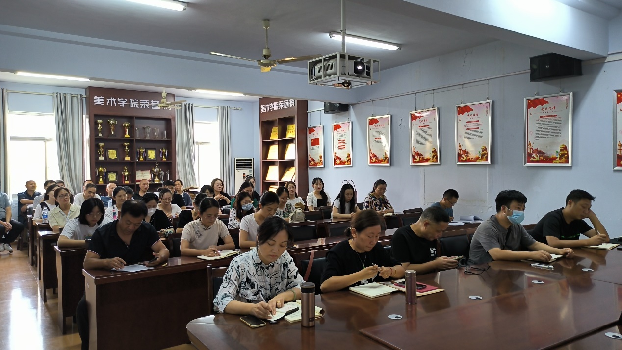 史继红强调,全体教职工要切实抓好学院重点工作落实、提升教书育人能力本领。一是提高政治站位,大力弘扬社会主义核心价值观;二是落实工作责任,贯彻立德树人根本任务;三是明确重点工作,提升创作与科研水平;四是增强纪律意识,助推教学工作提质增效。