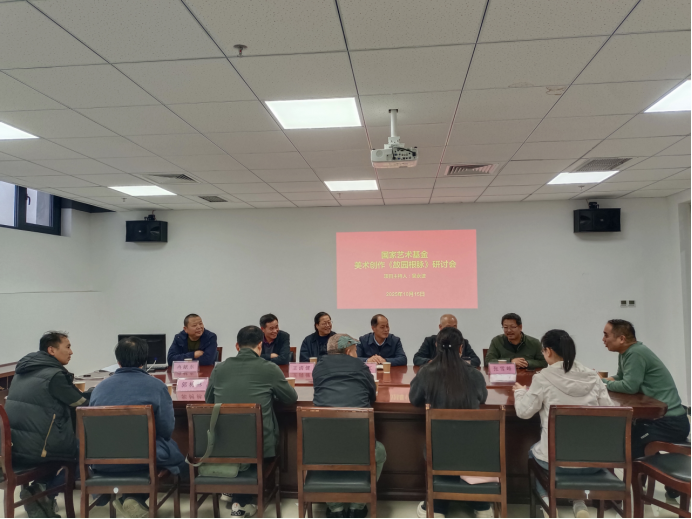 2025年10月15日下午,商丘师范学院美术学院组织召开国家艺术基金美术创作项目《故园根脉》研讨会。商丘市美术家协会主席王保起、原主席王清健,美术学院党委书记史继红,院长李林,党委副书记付松山,商丘市书法家协会副主席张雪峰,教授冉献东,艺术家代表张超军、陈继海、张亮、牛保、于明刚,2023年国家艺术基金美术创作项目获得者郭树林等嘉宾齐聚一堂,围绕作品创作理念、艺术特色与时代价值展开深度研讨。本次研讨会由史继红主持。