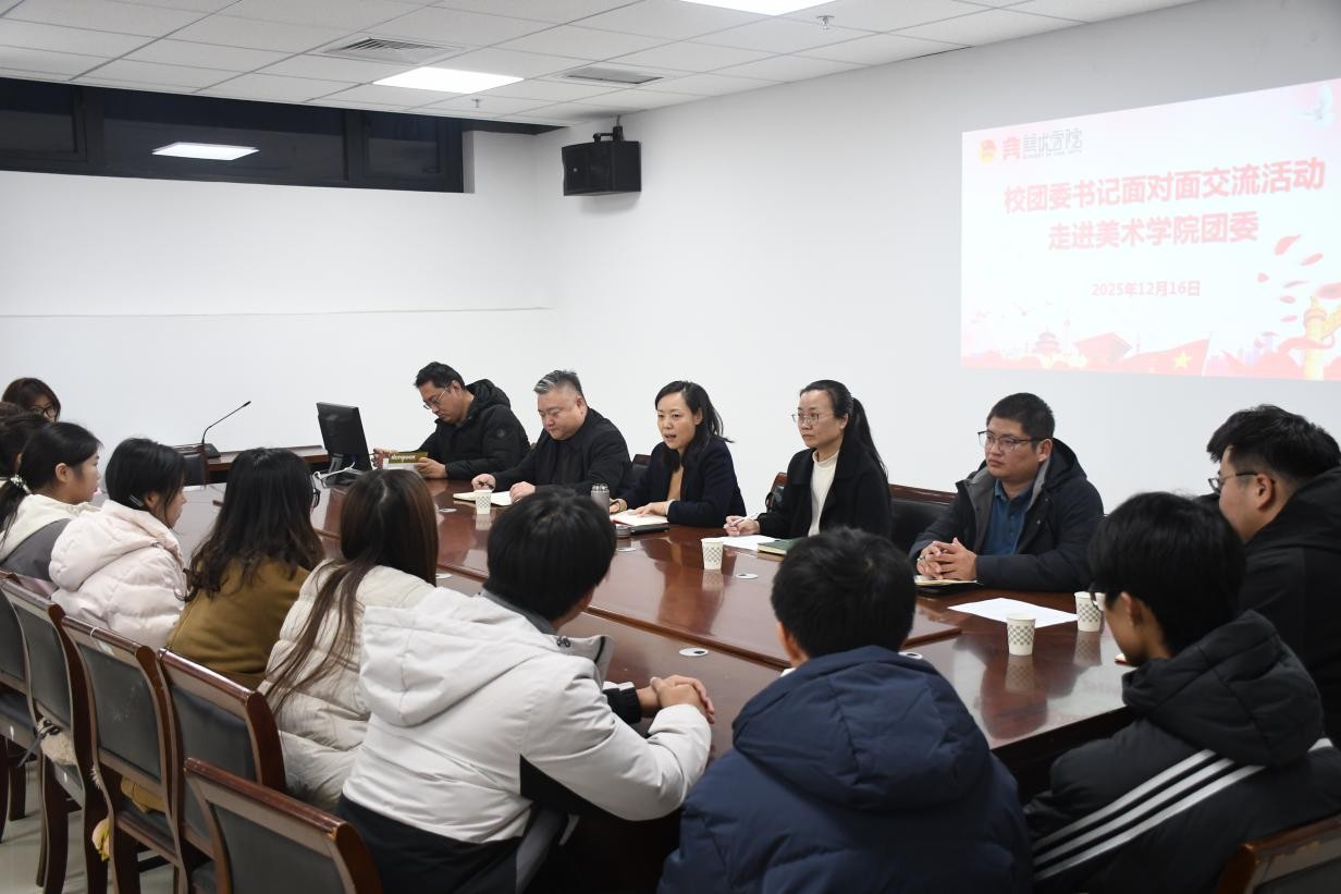 为进一步提升美术学院团学工作质量,更好地服务广大团学青年,引导广大团学干部激发活力,统一思想,提高工作能力,12月16日下午,校团委和美术学院团委开展了面对面交流活动,校团委书记刘培培,校团委组织部部长张振宇、社团管理部部长邵一方、大学生艺术教育中心李杰,美术学院党委副书记张芳剑、团委书记魏冉以及部分青年团学代表参加了交流活动。