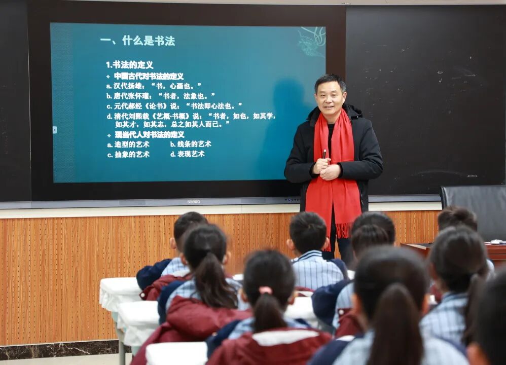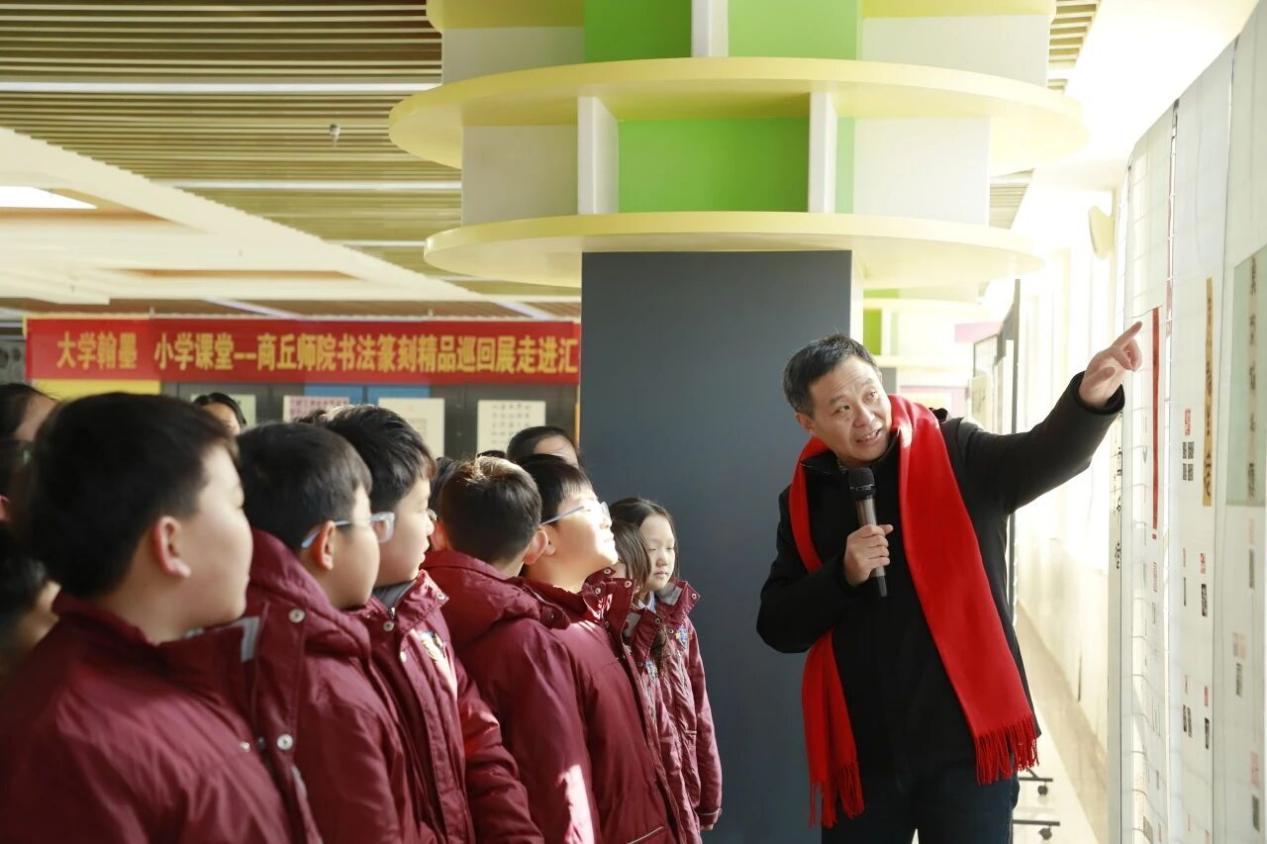 2026年1月22日,由美术学院主办的“蒲公英大讲堂•美育浸润行动”暨书法名家进校园活动在汇佳学校顺利举行。此次活动旨在弘扬中华优秀传统文化,推动高校美育资源向社会延伸,通过书法展览、名家讲座、互动笔会等形式,为中小学师生带来一场沉浸式的传统文化体验。