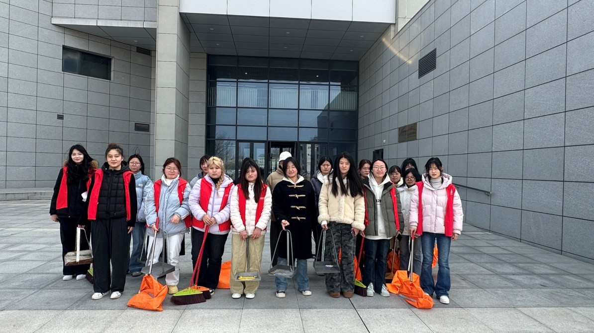 本次活动重点针对艺术中心周边及三商楼南侧道路区域展开集中清理。清扫过程中,同学们精神饱满、分工有序,手持扫帚、簸箕等工具,认真清扫路面落叶与杂物。大家相互配合、积极投入,在美化校园环境的同时,也展现出美院学子团结协作、昂扬向上的精神风貌。