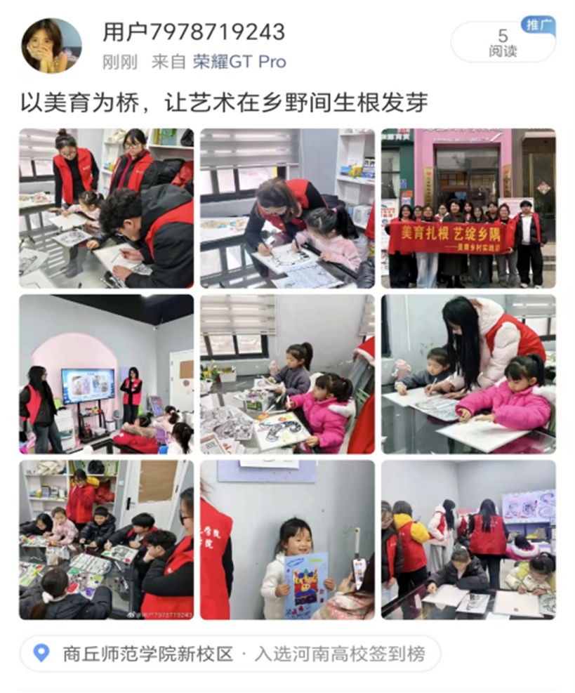 寒假期间,美术学院学子以寒假返乡为契机,充分发挥专业所长,因地制宜开展各类艺术实践与文化服务活动,用画笔与创意传递温暖,以艺术力量赋能家乡、服务群众,在基层一线书写青春担当。