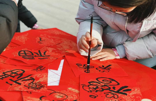 实践团为廉政文化广场市民书写春联、福字等书法作品90余幅,以笔墨艺术传递美好祝福与廉洁理念,切实将传统文化惠民服务落到实处,提升了市民的文化获得感与幸福感;举办书法作品展示活动1场,展出团队成员及市民书法作品90余幅,让市民近距离感受书法文化魅力,推动书法文化在城市“活”起来、传下去。