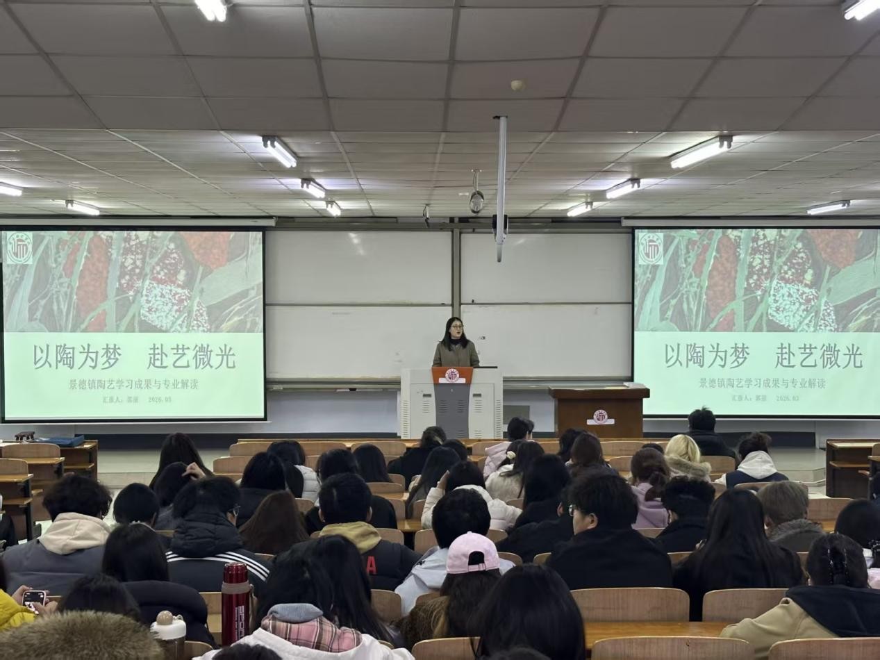 汇报会上,郭丽老师以“景德镇陶瓷艺术研习汇报”为主题,结合理论学习、实地考察与创作实践,向大家系统汇报了在陶瓷艺术传承与创新方面的探索与收获,并展示了在景德镇学习期间的研习成果。
