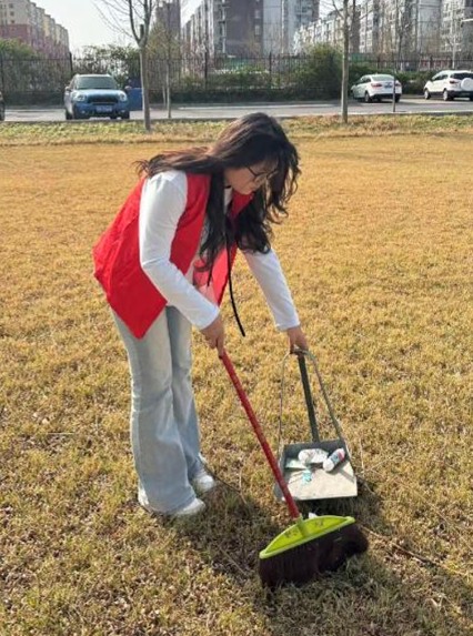 活动中,同学们携带扫帚、垃圾夹、垃圾袋等清洁工具,有序前往清扫区域。大家分工明确、配合默契,有的清扫路面落叶与杂物,有的捡拾草坪内的纸屑、塑料袋,身着红色志愿马甲的同学们格外醒目,他们充分发扬不怕脏、不怕累的精神,经过共同努力,原本杂乱积尘的角落与公共设施焕然一新。