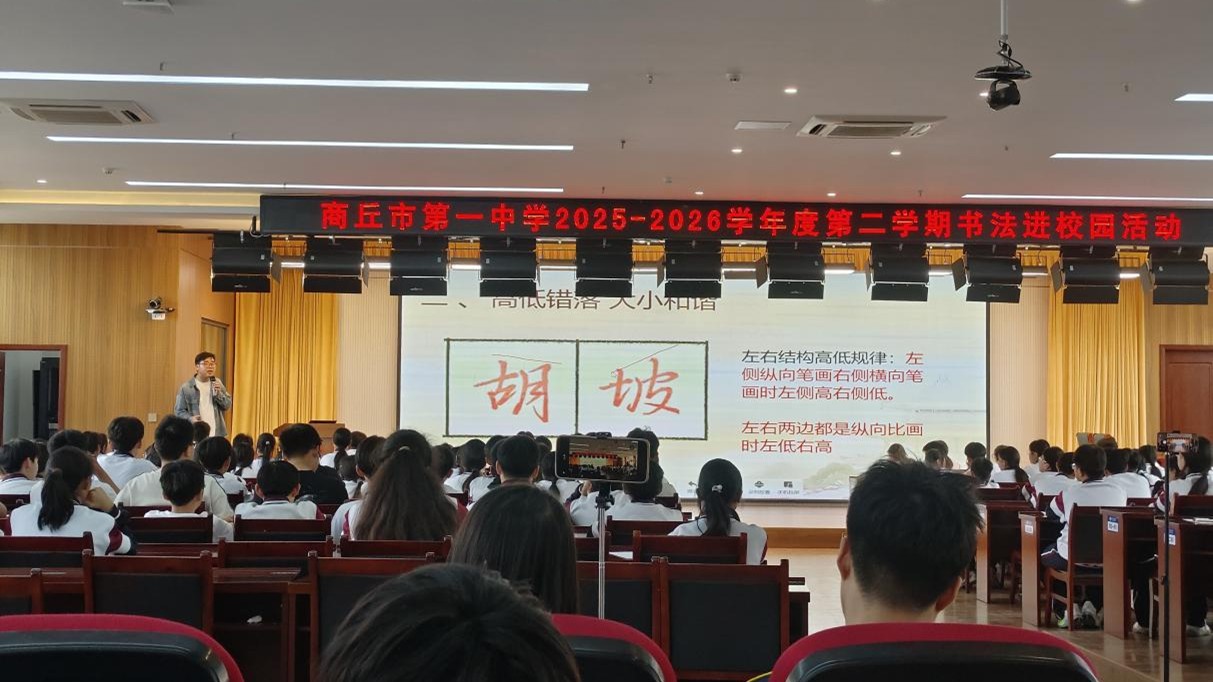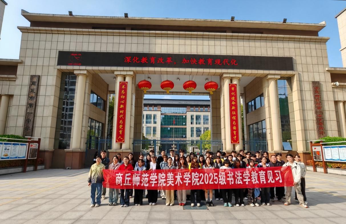 下午,师生来到商丘市一中新校区,观摩《执笔向未来,书写新风采》书法公开课,聆听专题报告,系统学习初中书法教学模式、书香校园建设及书法教师素养要求,课后参观书法社团作品展,与在校学生交流互动,深入了解中学书法教育开展模式。
