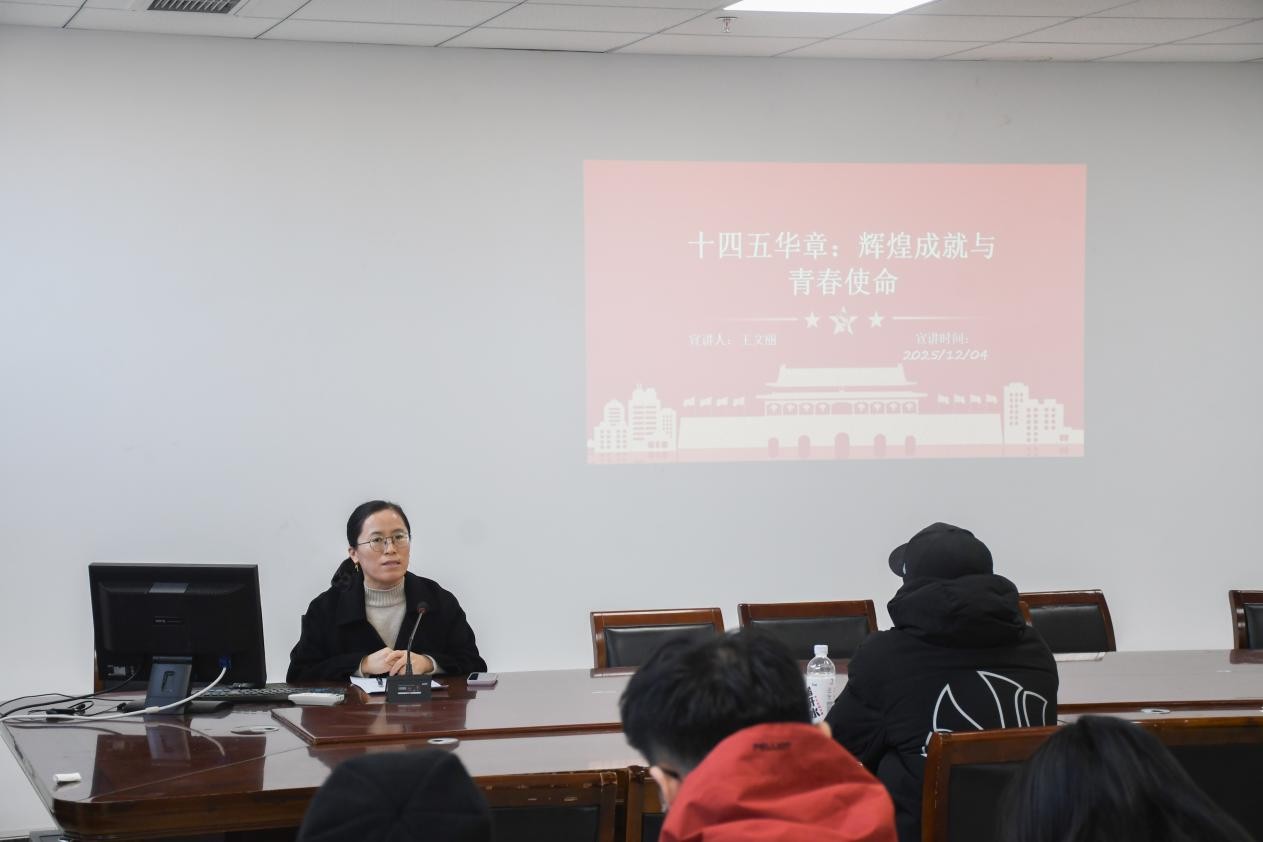 王文丽以“‘十四五’华章:辉煌成就与青春使命”为主题,紧扣“十四五”时期的历史方位与发展成就,从经济发展、创新驱动、改革开放、民生福祉、生态文明等五个方面,全面展示这一时期取得的重大成就。最后深入剖析成就背后的关键因素,强调党的坚强领导、科学思想指引、制度优势发挥和人民团结奋斗是不可或缺的成功密码。希望学生党员坚定理想信念,练就过硬本领,勇于创新创造,矢志艰苦奋斗,锤炼品德修为,充分展现新时代青年党员的良好精神风貌,努力成长为对国家、对社会有贡献的优秀人才。