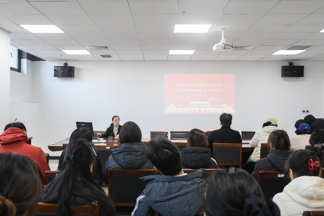 12月4日,美术学院在艺术中心218会议室顺利举办第172期“蒲公英·德艺讲堂”暨第22期预备党员专题培训会。本次培训由学生第一党支部书记王文丽主讲,第22期全体预备党员与部分入党积极分子参加学习。