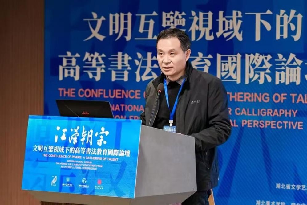 2025年11月13日,湖北美术学院、湖北省书法家协会主办的“江汉朝宗——文明互鉴视域下的高等书法教育国际论坛”“江汉朝宗——中国(武汉)国际书法邀请展”在湖北美术学院昙华林校区成功举办。商丘师范学院美术学院院长李林应邀参加论坛,并作为参展艺术家代表出席展览开幕式,并以《AI语境下“知识平权”对书法教育影响的思考》为题作专题发言。