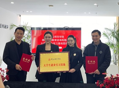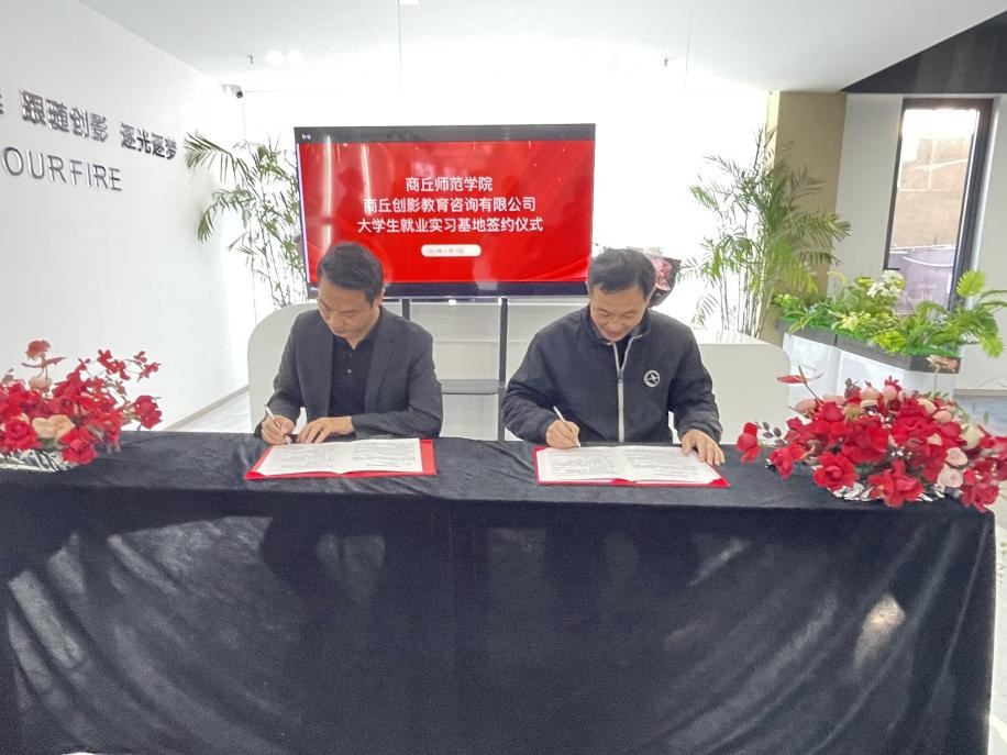在创影教育负责人的陪同下,学院一行实地参观了该公司的基础设施建设,深入了解了该公司的运营模式和公司规模。随后,双方共同签署了《商丘师范学院大学生就业实习基地协议书》并举行了“大学生就业实习基地”授牌仪式,标志着双方合作关系的正式确立。