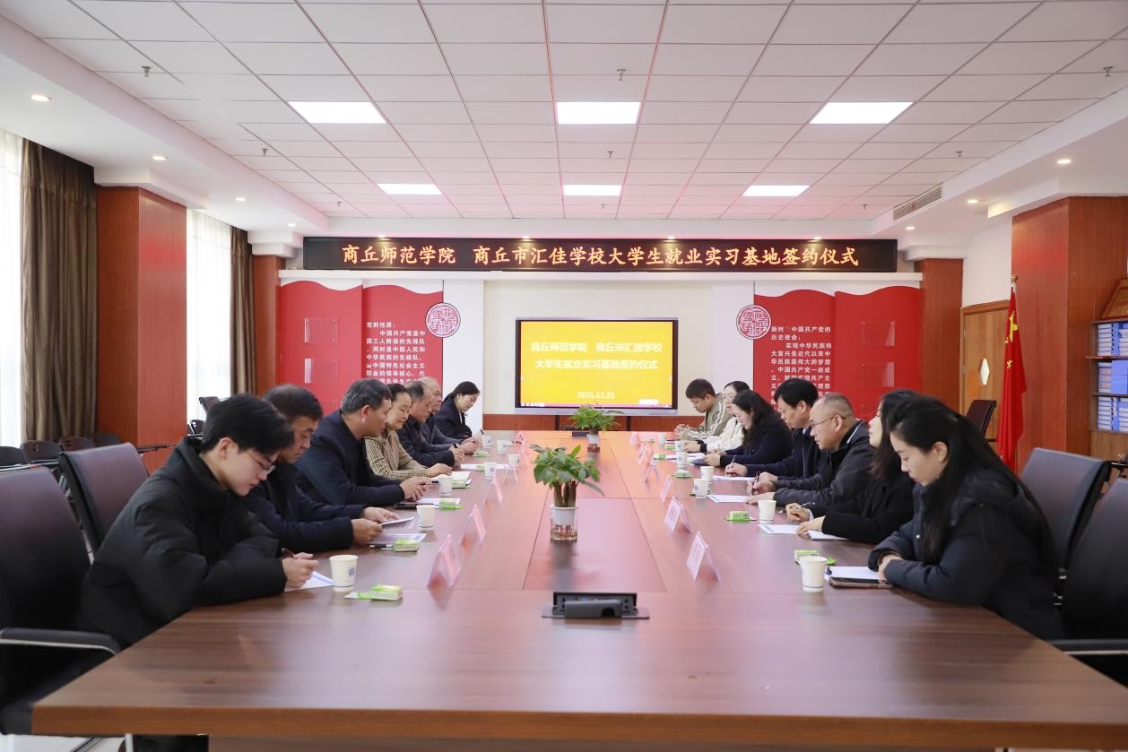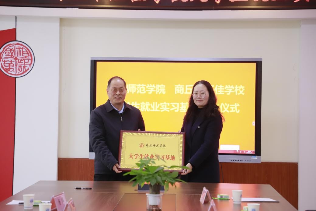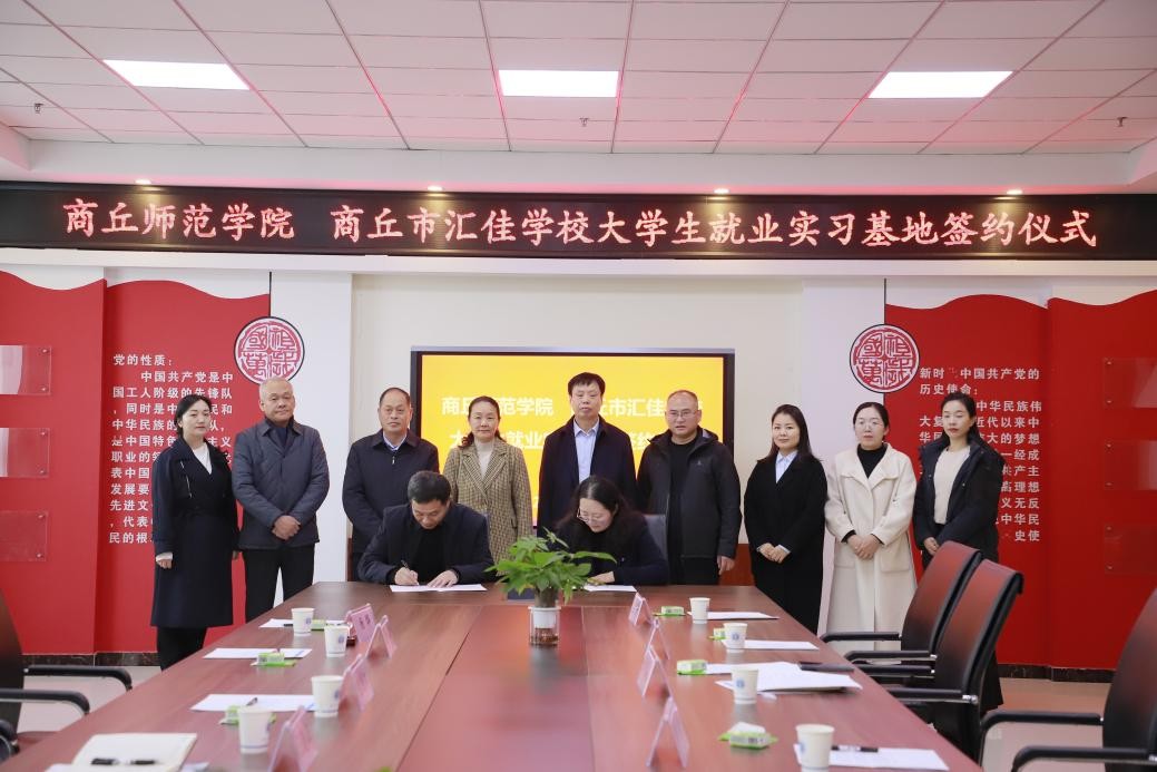 座谈结束后,双方共同签署了《商丘师范学院大学生就业实习基地协议书》,并举行了“大学生就业实习基地”授牌仪式,标志着双方合作进入实质性阶段。校方一行还实地参观了汇佳学校的校园环境与教学设施。